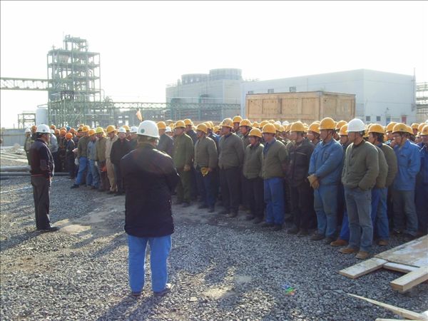 會(huì)上,分公司副經(jīng)理欒立超代表分公司對(duì)干好EO裝置的重要意義進(jìn)行了分析,并部署了質(zhì)量安全的控制、機(jī)械材料的供應(yīng)、施工技術(shù)服務(wù)等方面的工作。他號(hào)召施工人員要把項(xiàng)目的各項(xiàng)工作落到實(shí)處,做到措施落實(shí)到位、分工明確、責(zé)任到人;同時(shí)各個(gè)施工小組要認(rèn)真細(xì)化任務(wù),把任務(wù)分解到每一周、每一日,在全場(chǎng)形成你追我趕的大干局面。業(yè)主阿克蘇—諾貝爾乙烯胺(寧波)有限公司的現(xiàn)場(chǎng)項(xiàng)目經(jīng)理和管理公司福斯特惠勒國際工程咨詢(上海)有限公司的現(xiàn)場(chǎng)施工經(jīng)理也在會(huì)上給施工人員打氣鼓勵(lì)。