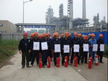 活動得到了建滔化工集團(揚州)置年石化有限公司的大力支持,業(yè)主質(zhì)安部詹建華主任、羅仁宏副主任不但為我們提供了活動場地和部分滅火器材,還親臨現(xiàn)場觀摩和指導(dǎo)工作。