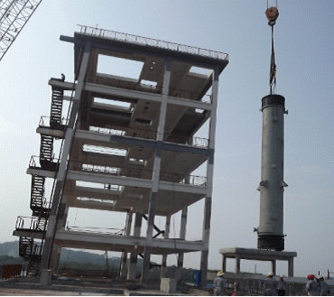 從春寒料峭的二月初到炎炎烈日的三伏天,項(xiàng)目部全體成員在項(xiàng)目經(jīng)理陳岳剛的帶領(lǐng)下,積極奮戰(zhàn)在施工現(xiàn)場一線。經(jīng)過5個月的鏖戰(zhàn),項(xiàng)目部戰(zhàn)勝了雨季,順利于2013年5月27日主體框架封頂,相比于總承包給出的節(jié)點(diǎn)6月27日提前了一個月之久。在接下來的這段日子里經(jīng)受住了高溫的考驗(yàn),于2013年7月15日,成功吊裝全場第一臺大型設(shè)備吊裝!