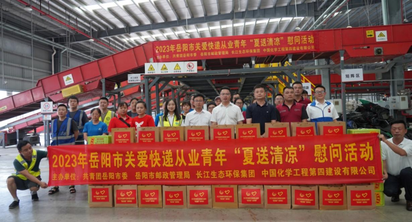 7月18日下午,公司聯(lián)合岳陽團(tuán)市委、市郵政管理局、長江生態(tài)環(huán)保集團(tuán)在科德物流園開展2023年關(guān)愛快遞從業(yè)青年“夏送清涼”慰問活動(dòng)。共青團(tuán)岳陽市委書記綦小廣、岳陽市郵政管理局局長殷宏亮出席慰問活動(dòng)。長江生態(tài)環(huán)保集團(tuán)湖南區(qū)域公司黨群工作部、公司團(tuán)委、岳陽污水治理項(xiàng)目部相關(guān)負(fù)責(zé)人員參加慰問活動(dòng)。
