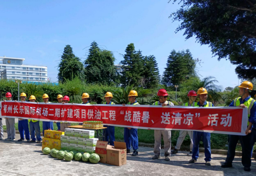 7月23日,公司項(xiàng)目中心福州長樂國際機(jī)場供油工程項(xiàng)目部開展“戰(zhàn)酷暑、送清涼”慰問活動(dòng)。
