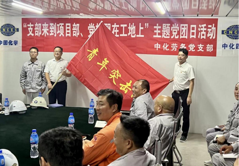 活動中,黨支部為大家講授專題黨課,開展交流座談,廣泛了解職工群眾心中所想、生活所盼、工作所需。同時,為確保安全優(yōu)質(zhì)高效完成施工任務(wù),黨支部發(fā)揮黨員先鋒模范作用和青年生力軍作用,在項目上組建了黨員先鋒隊和青年突擊隊,并舉行了授旗儀式。