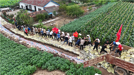 13日,公司機(jī)關(guān)總部全體員工主動(dòng)申請(qǐng)參與搶建工作,從臨近退休的“老大姐”到剛?cè)肼毜摹靶∧贻p”,從入黨多年的老黨員到佩戴團(tuán)徽的青年突擊隊(duì)隊(duì)員,裝運(yùn)沙袋、鋪設(shè)油布,沒(méi)有一個(gè)人叫苦叫累。到7月16日晚,第三道防線已完成所有堤防加固、彩條布鋪設(shè)、路口封閉和沙袋預(yù)留、現(xiàn)場(chǎng)清理等工作,在洞庭湖畔筑起了一道新的“長(zhǎng)城”。