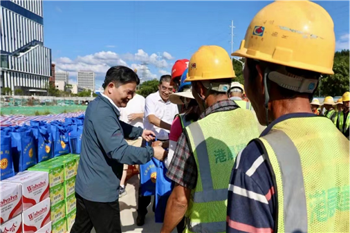 “伏天已至,感謝大家在高溫下堅守崗位,你們辛苦啦?!痹陧椖拷ㄔO(shè)現(xiàn)場,劉再衡向大家送上防暑降溫物品,詳細詢問職工們的工作情況,了解項目部防暑降溫和安全保障措施,再三叮囑管理人員和職工要合理安排作息時間,做好防暑降溫措施,確保大家工作開開心心、平平安安。希望職工們增強自我保護意識,做到勞逸結(jié)合,用良好的身心狀態(tài)來確保項目圓滿完工。