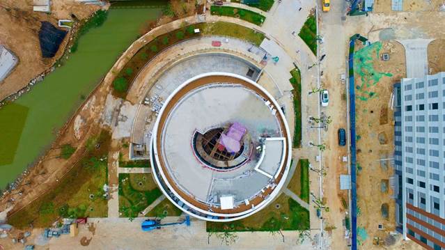 圓,是EOD項(xiàng)目B地塊內(nèi)的職工活動(dòng)中心。B7棟以其獨(dú)特的圓形造型,環(huán)繞在建筑周邊的坡道,結(jié)合場地高差及景觀,成為一道靚麗的風(fēng)景線,即將見證著B地塊的“圓滿”完工。作為休憩、娛樂的空間,它為思鄉(xiāng)人打造了一處溫馨的港灣。
