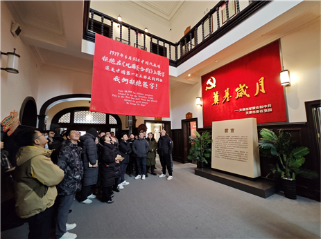 一條條閃耀著紅色光輝的“尋訪路線”,織就起青馬學(xué)員在津沽大地的“紅色學(xué)習(xí)地圖”。踏入平津戰(zhàn)役紀(jì)念館、周恩來鄧穎超紀(jì)念館,青馬學(xué)員通過珍貴的革命文物、紅色影像以及震撼的實景搭建,更加真切地了解到革命先輩們的英勇事跡;觀看天津張園“沉浸式”演繹展《津門往事》,體驗實景“解密式”《破曉》項目,青馬學(xué)員在“頭腦風(fēng)暴”中“解鎖”展廳故事,厚植愛國情懷。學(xué)習(xí)期間,還開展了“重走長征路”“黨史一點通”等紅色素質(zhì)拓展活動。