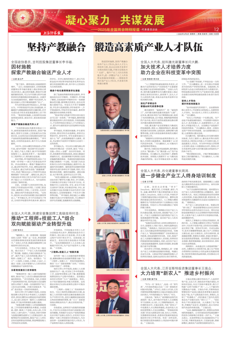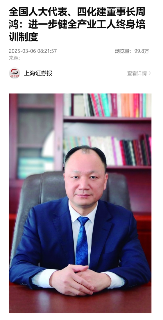 3月6日,《上海證券報》報道周鴻的建議:進一步健全產(chǎn)業(yè)工人終身培訓(xùn)制度。