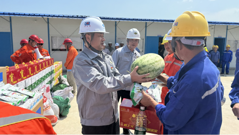 在項(xiàng)目現(xiàn)場(chǎng),張勇向奮戰(zhàn)在施工一線的工人致以敬意和問(wèn)候,向他們發(fā)放了礦泉水、清涼飲品、防暑藥品等慰問(wèn)物資。他強(qiáng)調(diào),安全是發(fā)展的前提,健康是幸福的基石,各級(jí)管理人員必須將員工生命安全與身體健康放在首位,壓實(shí)安全責(zé)任,強(qiáng)化現(xiàn)場(chǎng)管理,杜絕麻痹思想。工會(huì)組織要切實(shí)發(fā)揮橋梁紐帶作用,做實(shí)做細(xì)員工關(guān)懷工作,確保各項(xiàng)防暑降溫措施落地見效,保障人員平安度夏。