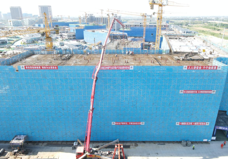 近日,伴隨著混凝土嗡嗡的澆搗聲,由港晨公司承建的岳陽自貿(mào)片區(qū)數(shù)字經(jīng)濟產(chǎn)業(yè)綜合體項目C1棟主體結(jié)構(gòu)封頂。