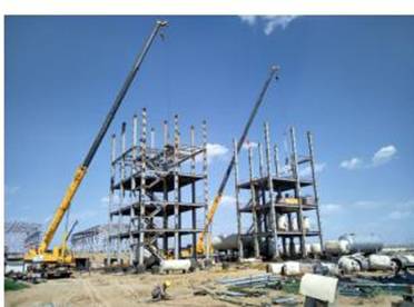 針對項(xiàng)目工期緊,任務(wù)量大,施工條件艱苦(缺水、風(fēng)沙較大)等情況,為保證施工的進(jìn)度、質(zhì)量、安全和效益,該項(xiàng)目部從勞動力投入、材料和機(jī)具設(shè)備的配置及夜間趕工等方面作了詳細(xì)計(jì)劃和部署。在保證施工質(zhì)量和安全的前提下,夜間施工安排電工跟班,隨時排除現(xiàn)場電力故障,合理安排夜間施工工序和作業(yè)內(nèi)容。現(xiàn)場人員發(fā)揚(yáng)“五加二”、“白加黑”的苦干精神,采取加班延點(diǎn)或倒班制,想方設(shè)法加快施工進(jìn)度。由于現(xiàn)階段該設(shè)備安裝主要為拆遷后的材料及設(shè)備,現(xiàn)場急需對其進(jìn)行分類組裝。施工班組利用晚上加班對拆遷的材料和設(shè)備進(jìn)行分類,白天照樣進(jìn)行吊裝焊接作業(yè),既保證了施工進(jìn)度,又確保了焊接質(zhì)量,獲得了業(yè)主的認(rèn)可及贊許,為分公司承建寧夏得中化學(xué)二期頗大的施工項(xiàng)目創(chuàng)造了有利條件。(圖為2-甲基吡啶裝置儲罐吊裝作業(yè)。)