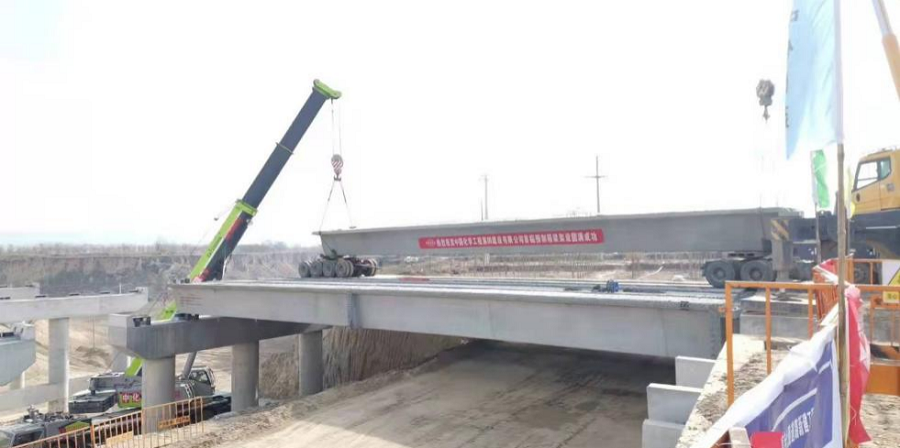 西部分公司榆中生態(tài)創(chuàng)新城夏緯七路項目首榀箱梁架設(shè)啟動