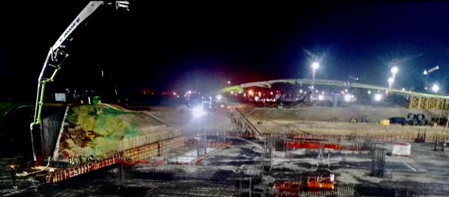 近日凌晨,由港晨公司承建的岳陽自貿(mào)片區(qū)EOD數(shù)字經(jīng)濟產(chǎn)業(yè)綜合體建設(shè)項目D地塊D1和D4主樓基礎(chǔ)筏板及地下室基礎(chǔ)承臺混凝土澆筑圓滿收官。