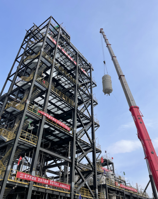 西部公司西部新材料項(xiàng)目完成4臺(tái)聚合反應(yīng)釜吊裝